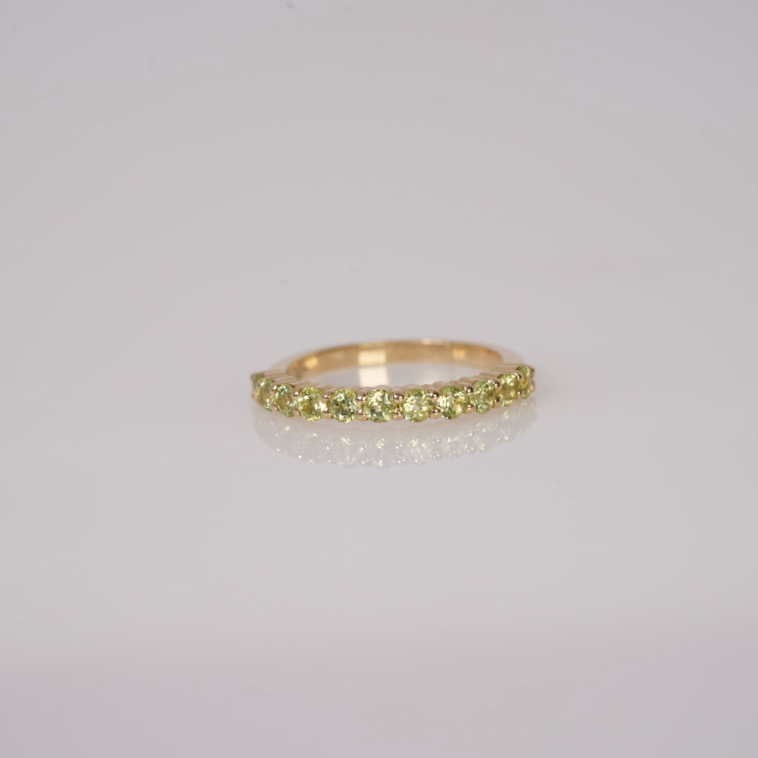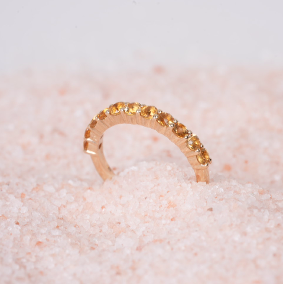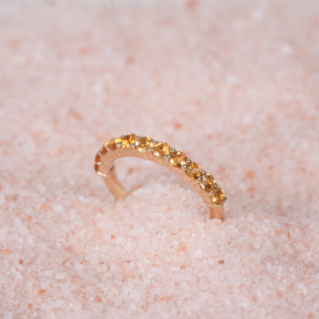 Esta pieza está elaborada en oro sólido de 14k y engastada con 11 piedras de 2.5 mm.
